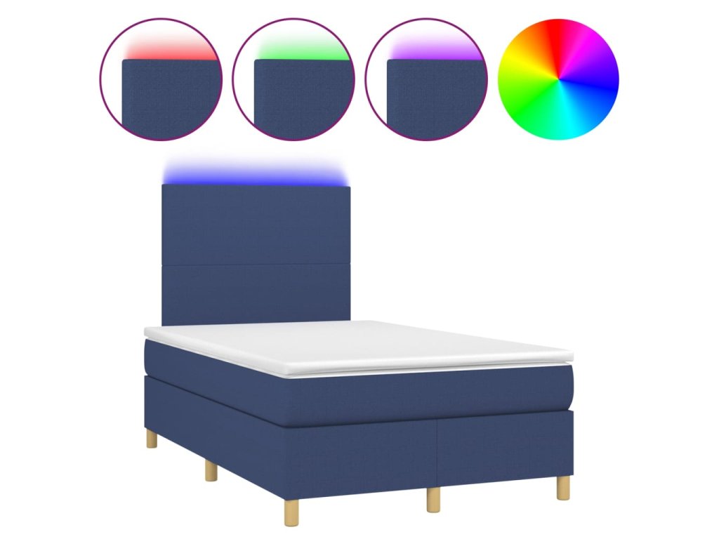 vidaXL Posteľ boxsping s matracom a LED modrá 120x200 cm látka