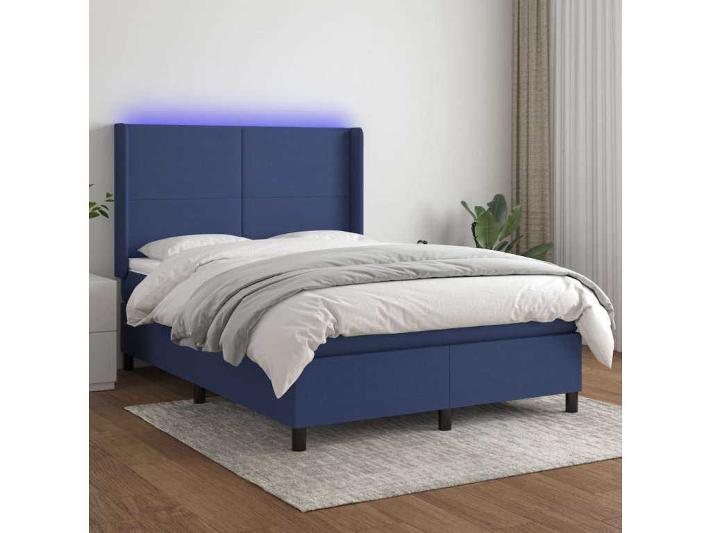 vidaXL Posteľ boxsping s matracom a LED modrá 140x190 cm látka