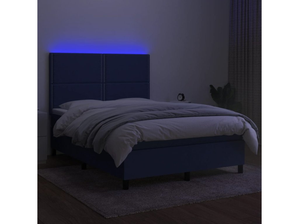 vidaXL Posteľ boxsping s matracom a LED modrá 140x190 cm látka