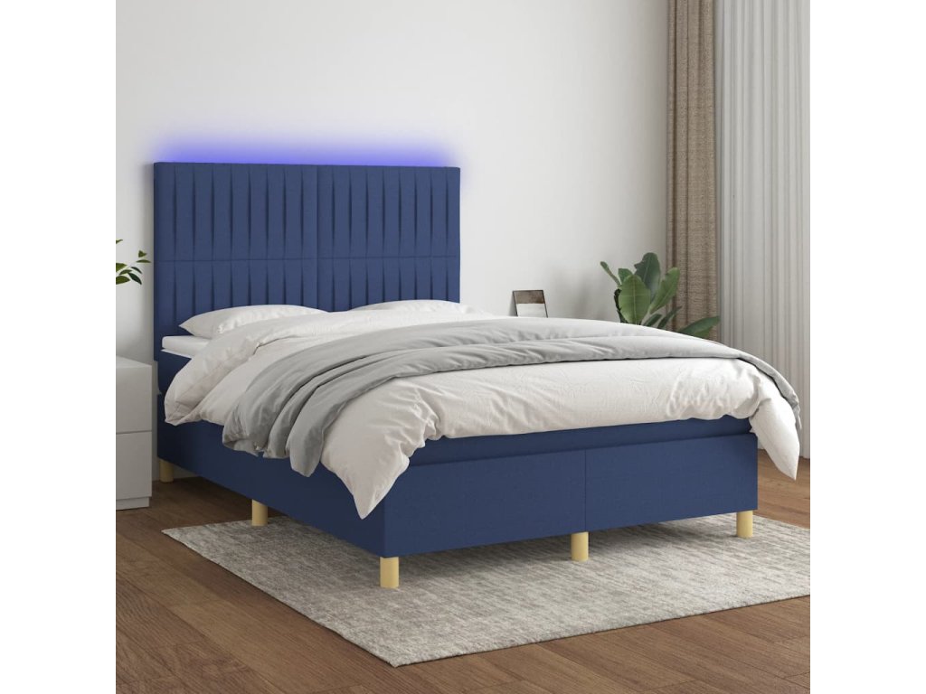 vidaXL Posteľ boxsping s matracom a LED modrá 140x200 cm látka