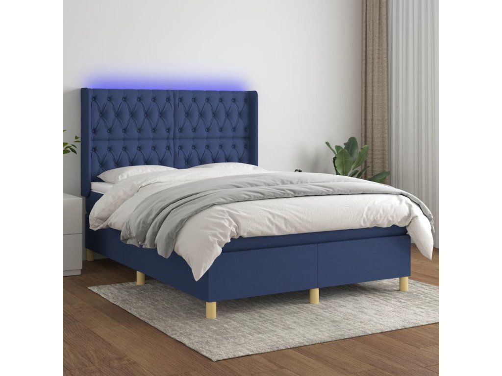 vidaXL Posteľ boxsping s matracom a LED modrá 140x200 cm látka