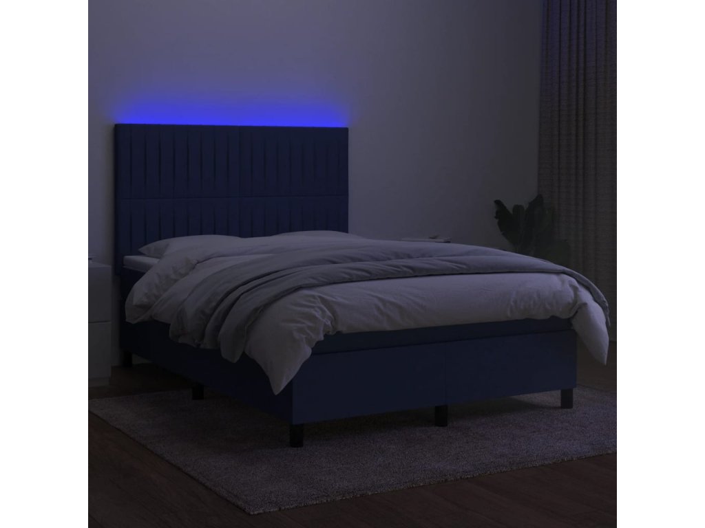vidaXL Posteľ boxsping s matracom a LED modrá 140x200 cm látka