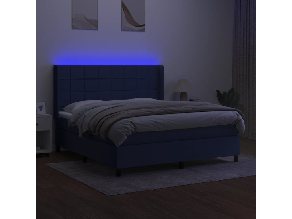 vidaXL Posteľ boxsping s matracom a LED modrá 160x200 cm látka