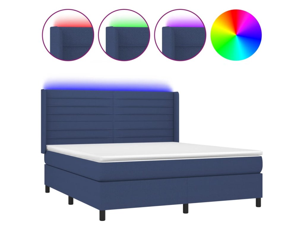 vidaXL Posteľ boxsping s matracom a LED modrá 160x200 cm látka