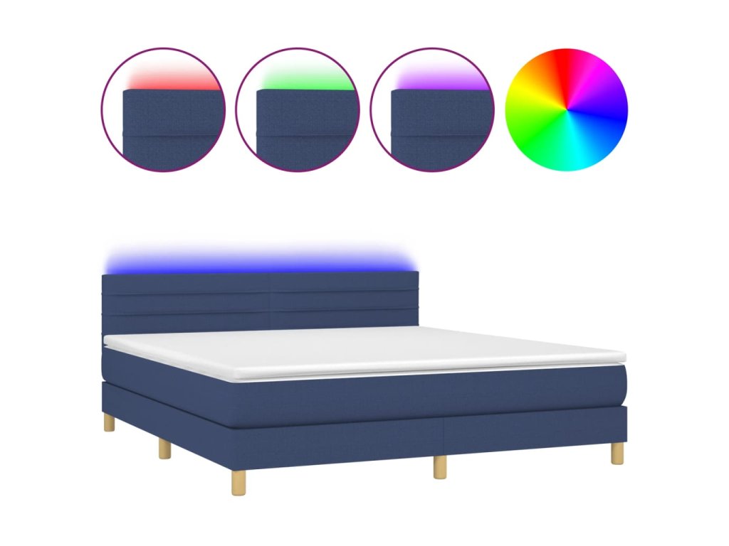 vidaXL Posteľ boxsping s matracom a LED modrá 160x200 cm látka