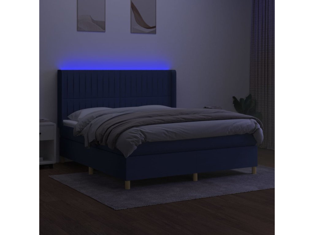 vidaXL Posteľ boxsping s matracom a LED modrá 160x200 cm látka