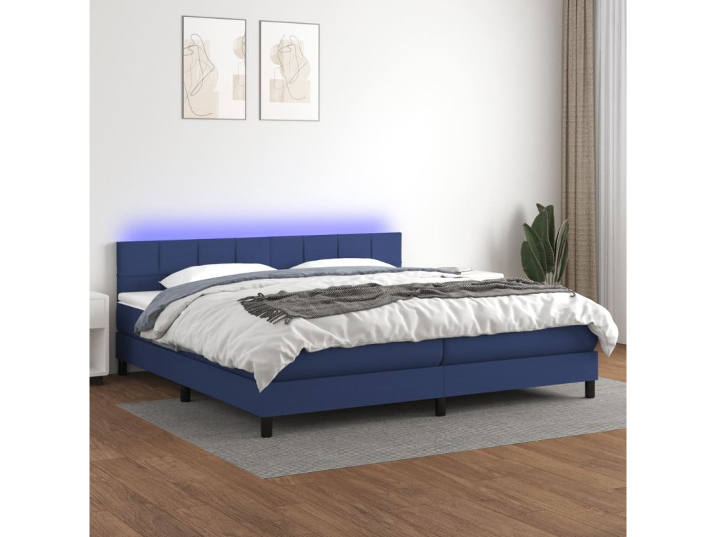 vidaXL Posteľ boxsping s matracom a LED modrá 200x200 cm látka