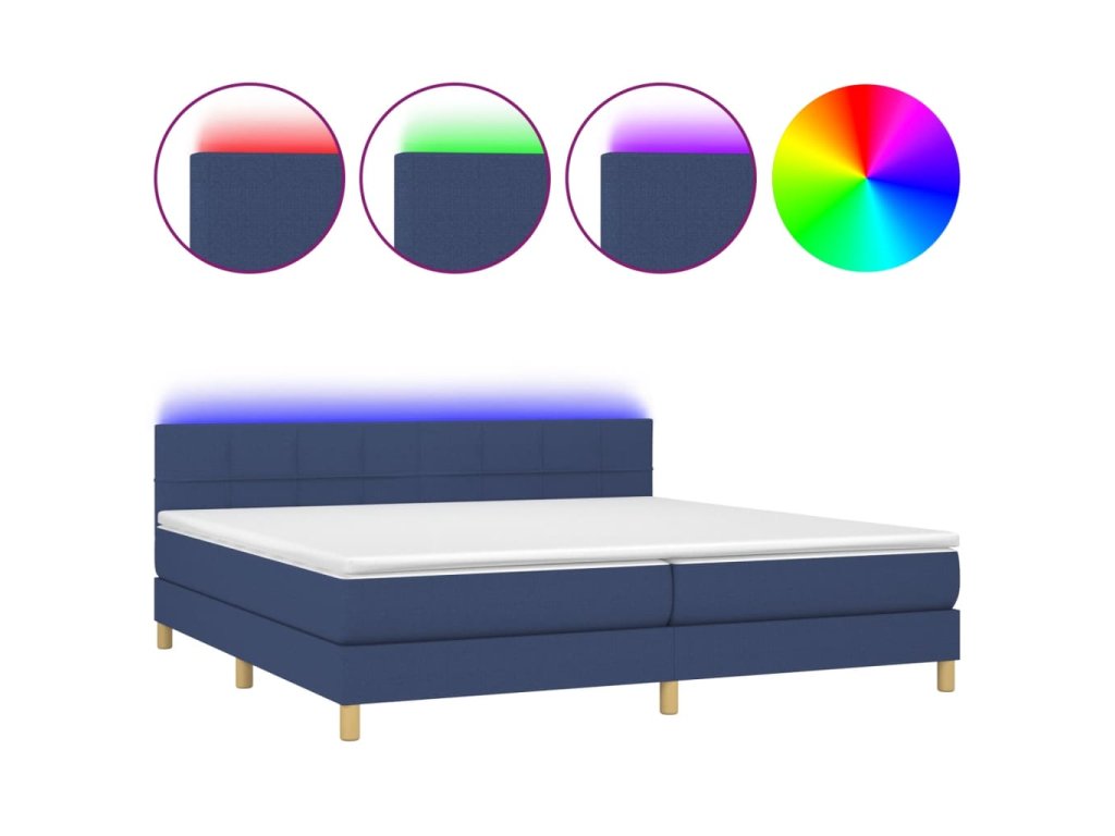 vidaXL Posteľ boxsping s matracom a LED modrá 200x200 cm látka