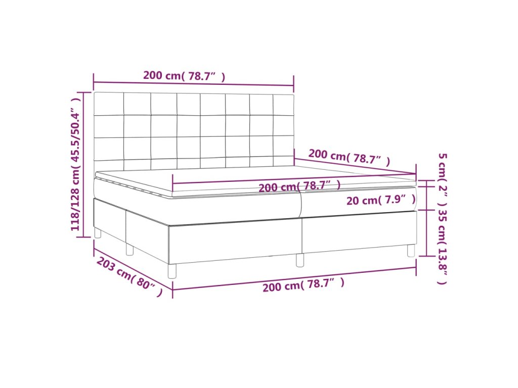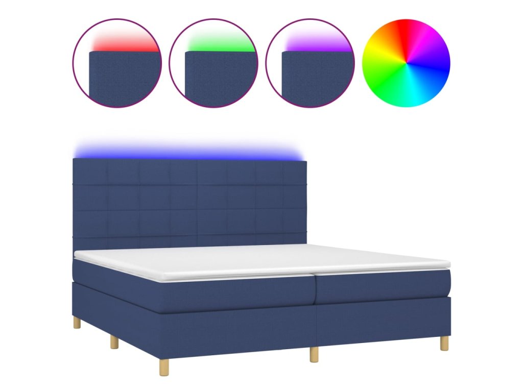 vidaXL Posteľ boxsping s matracom a LED modrá 200x200 cm látka