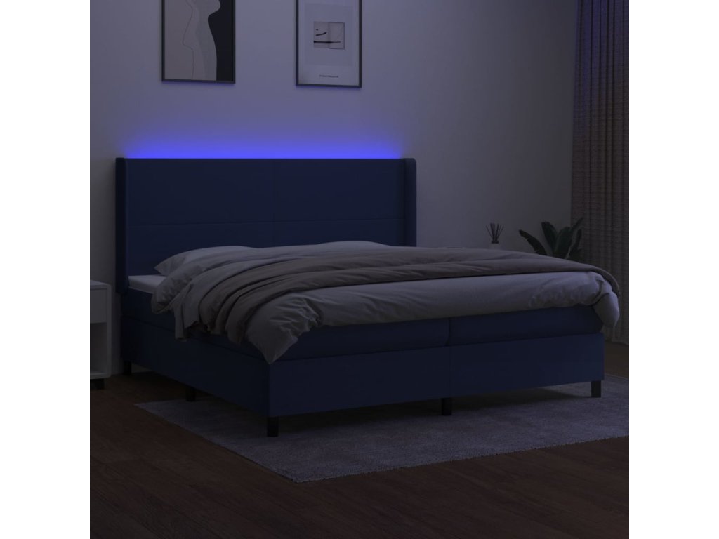 vidaXL Posteľ boxsping s matracom a LED modrá 200x200 cm látka