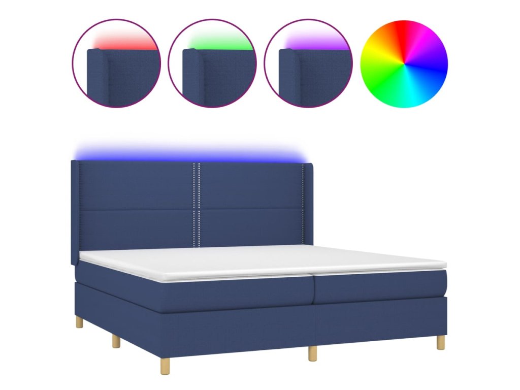 vidaXL Posteľ boxsping s matracom a LED modrá 200x200 cm látka