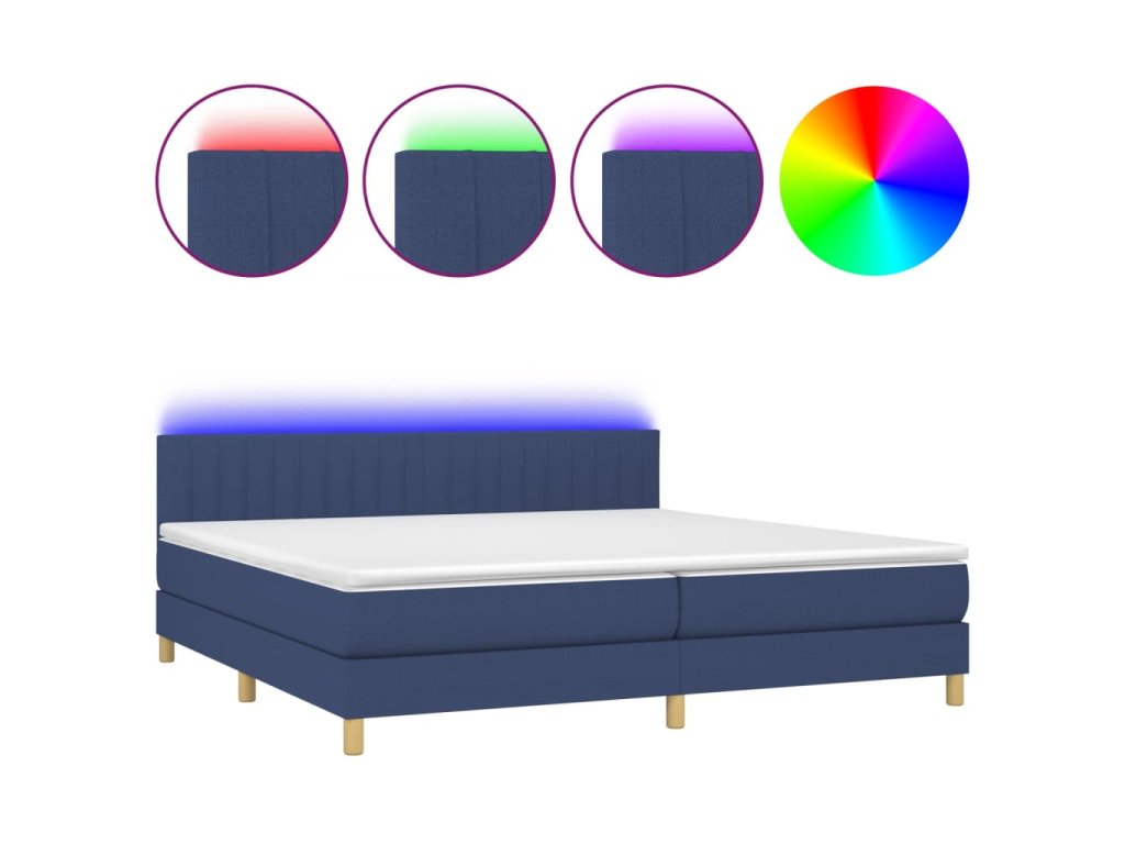 vidaXL Posteľ boxsping s matracom a LED modrá 200x200 cm látka