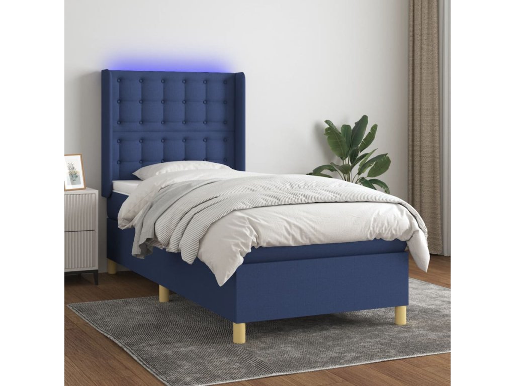 vidaXL Posteľ boxsping s matracom a LED modrá 80x200 cm látka