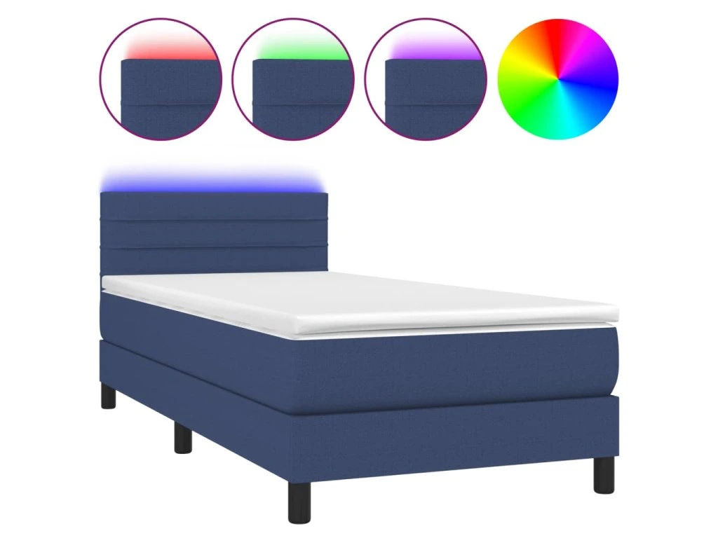 vidaXL Posteľ boxsping s matracom a LED modrá 90x190 cm látka