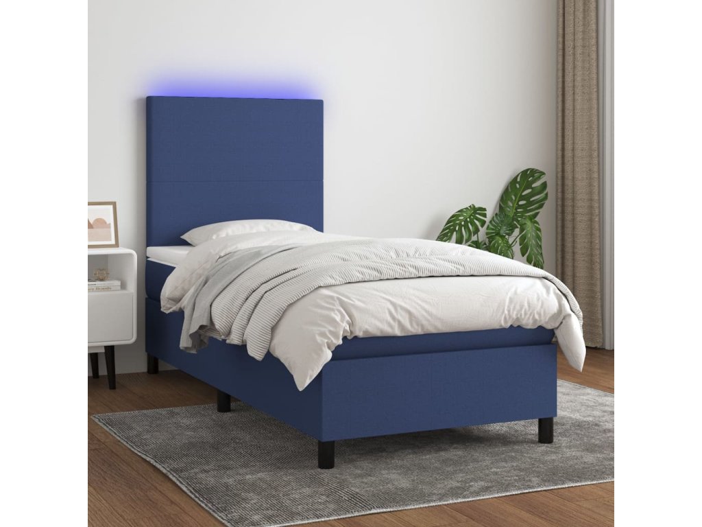 vidaXL Posteľ boxsping s matracom a LED modrá 90x190 cm látka