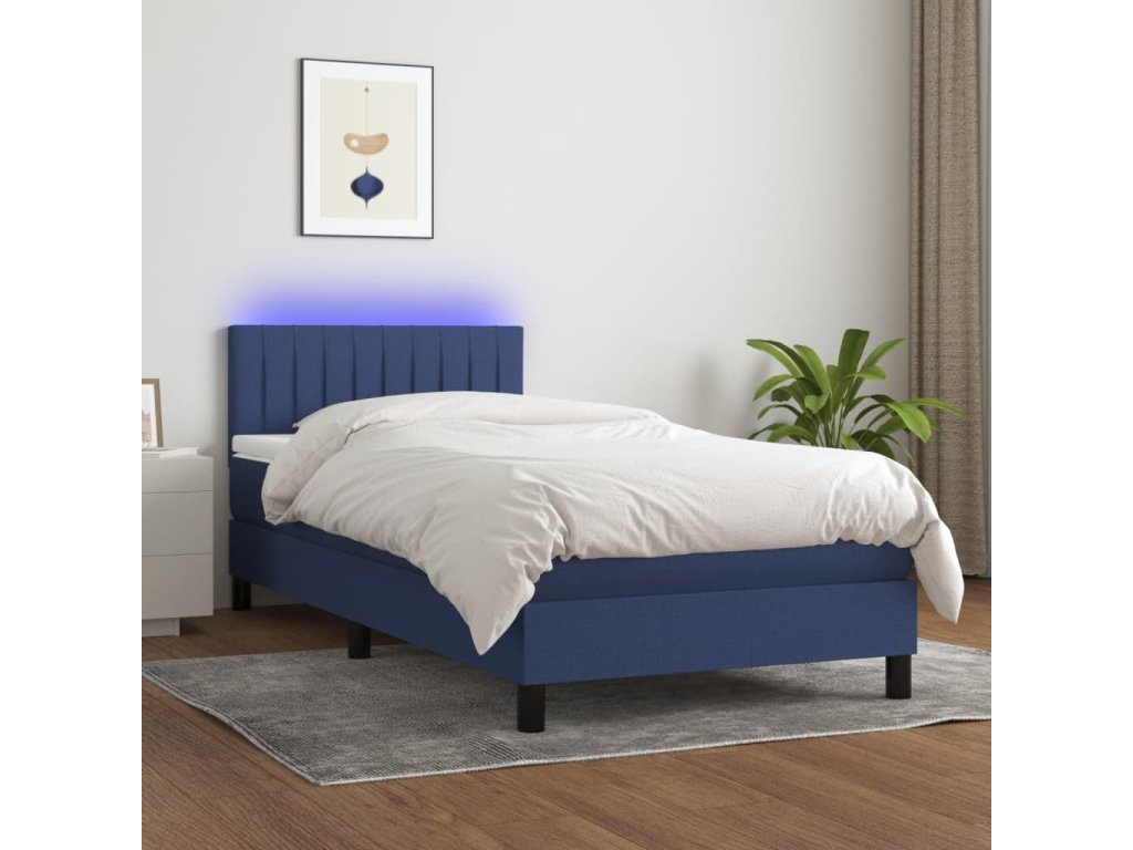 vidaXL Posteľ boxsping s matracom a LED modrá 90x190 cm látka