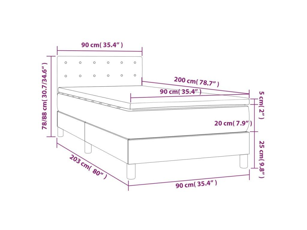 vidaXL Posteľ boxsping s matracom a LED modrá 90x200 cm látka