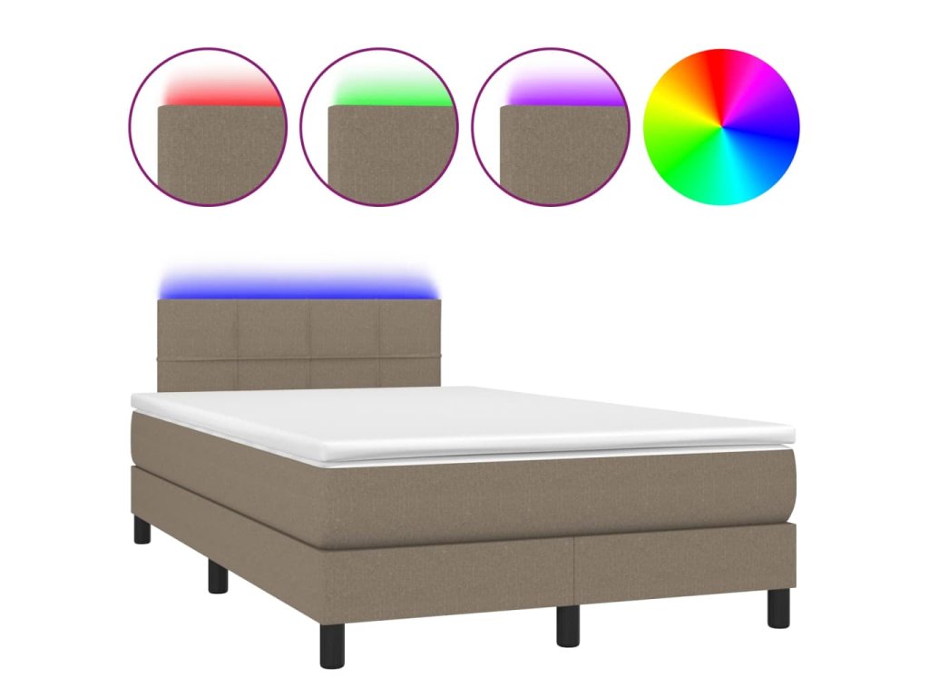vidaXL Posteľ boxsping s matracom a LED sivohnedá 120x200 cm látka