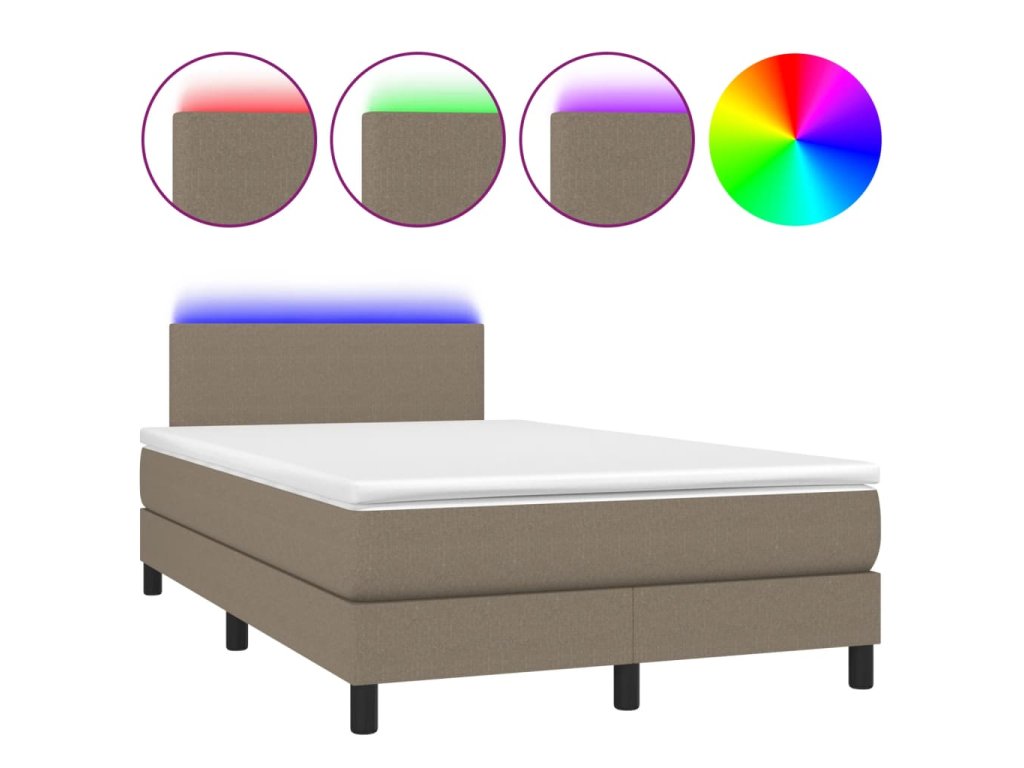 vidaXL Posteľ boxsping s matracom a LED sivohnedá 120x200 cm látka