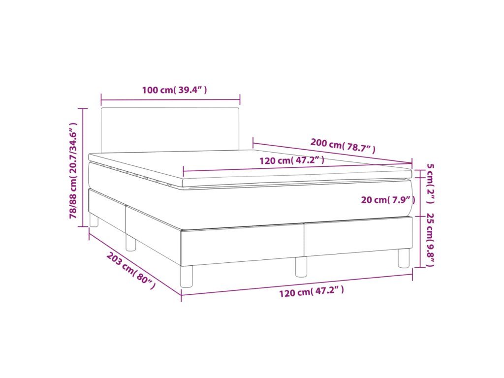 - Rozmery: 120 x 200 x 20 cm (Š x D x V)