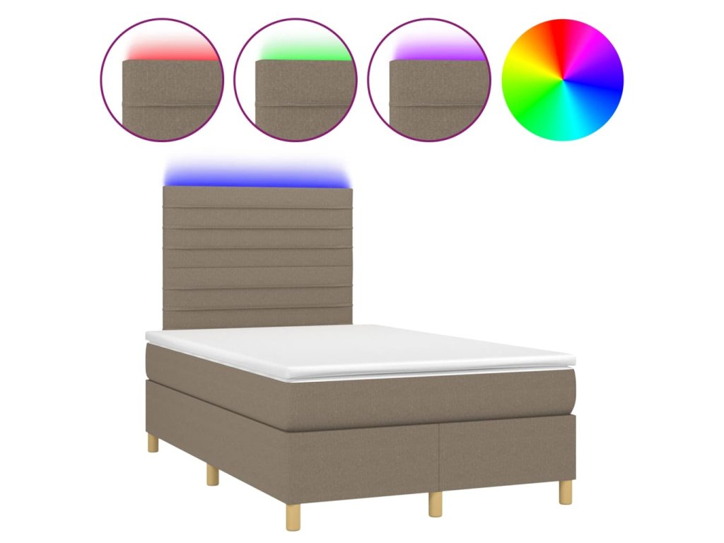 vidaXL Posteľ boxsping s matracom a LED sivohnedá 120x200 cm látka