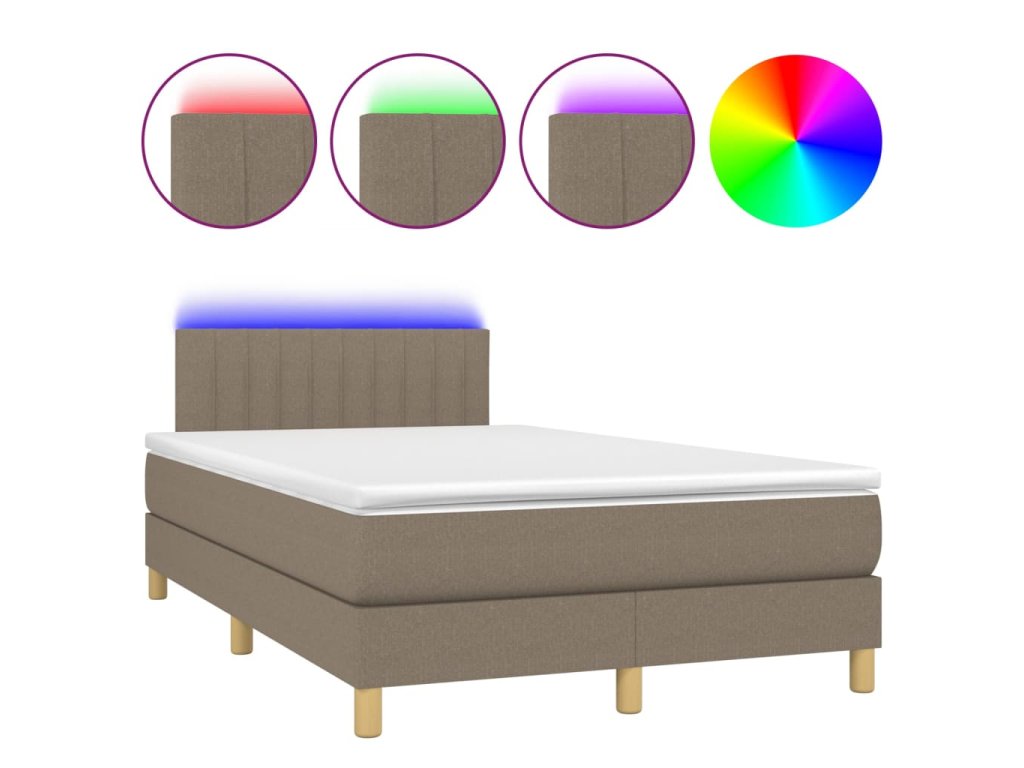 vidaXL Posteľ boxsping s matracom a LED sivohnedá 120x200 cm látka