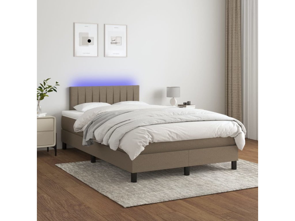 vidaXL Posteľ boxsping s matracom a LED sivohnedá 120x200 cm látka