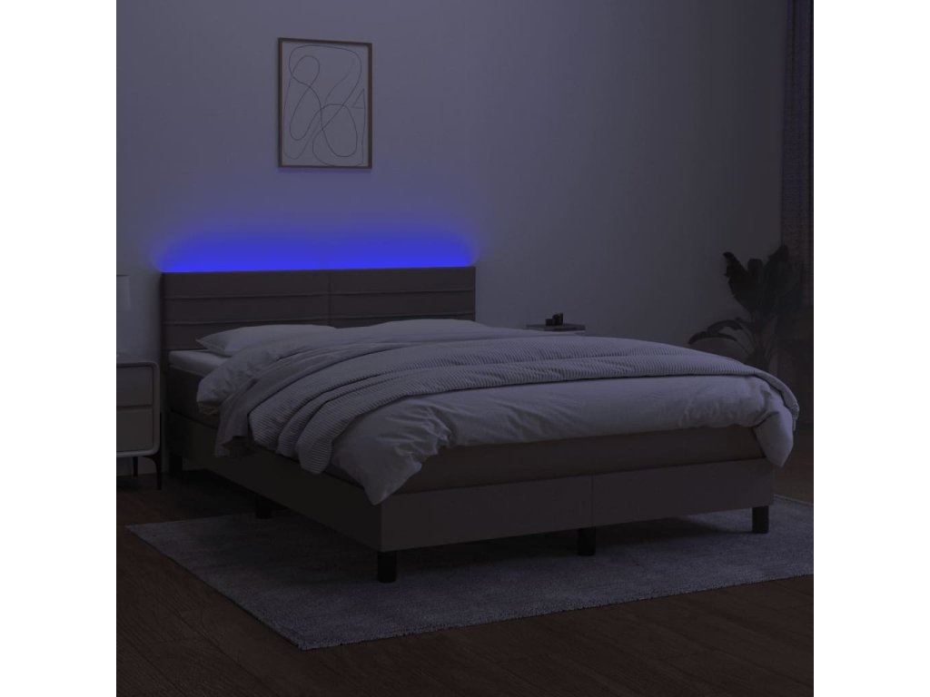 vidaXL Posteľ boxsping s matracom a LED sivohnedá 140x190 cm látka
