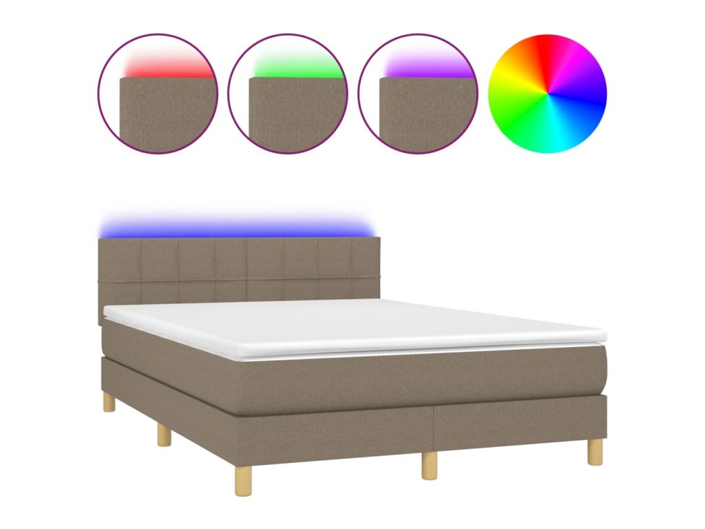 vidaXL Posteľ boxsping s matracom a LED sivohnedá 140x200 cm látka