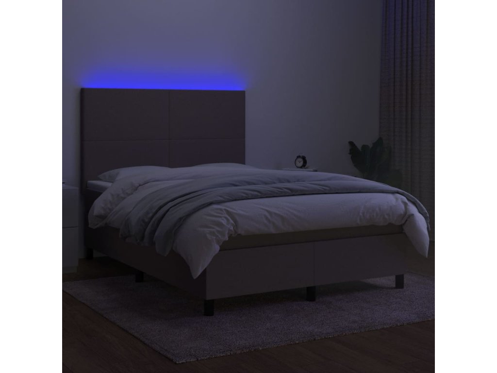 vidaXL Posteľ boxsping s matracom a LED sivohnedá 140x200 cm látka