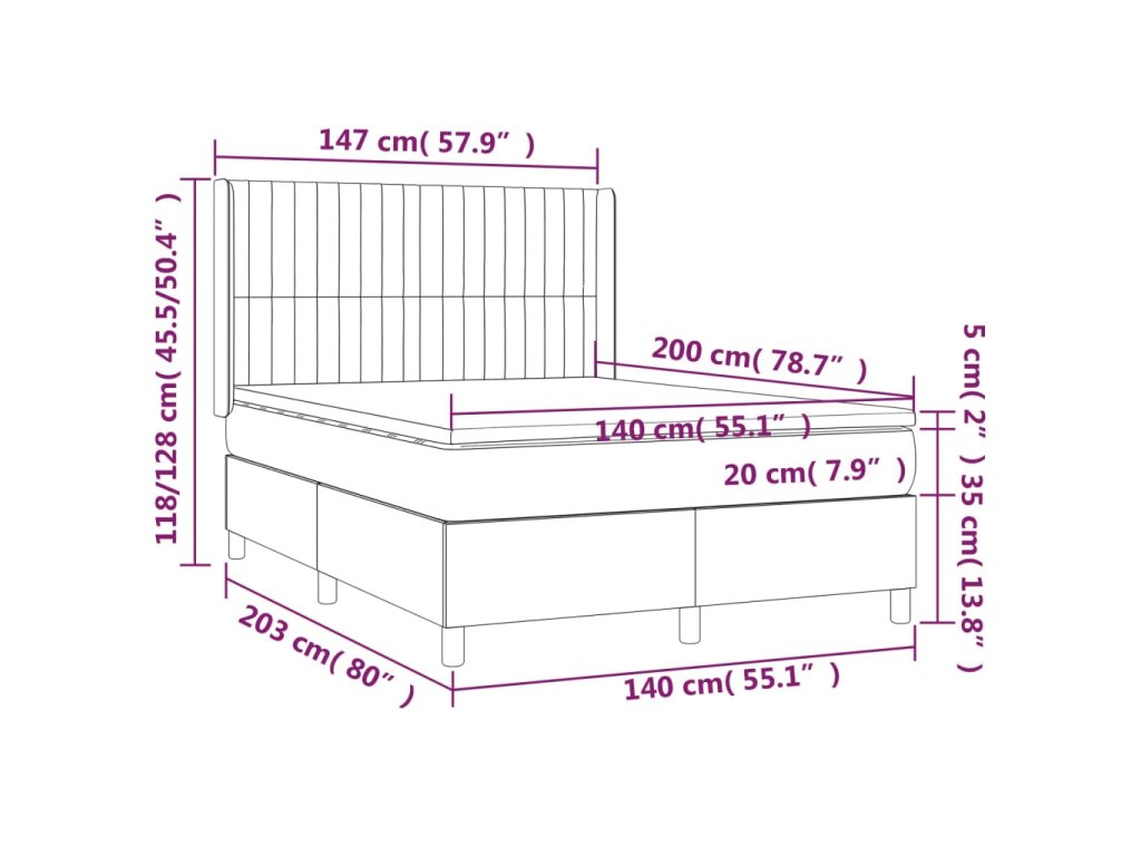 - Celkové rozmery: 203 x 147 x 118/128 cm (D x Š x V)