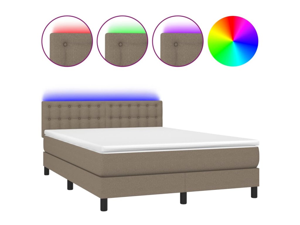 vidaXL Posteľ boxsping s matracom a LED sivohnedá 140x200 cm látka