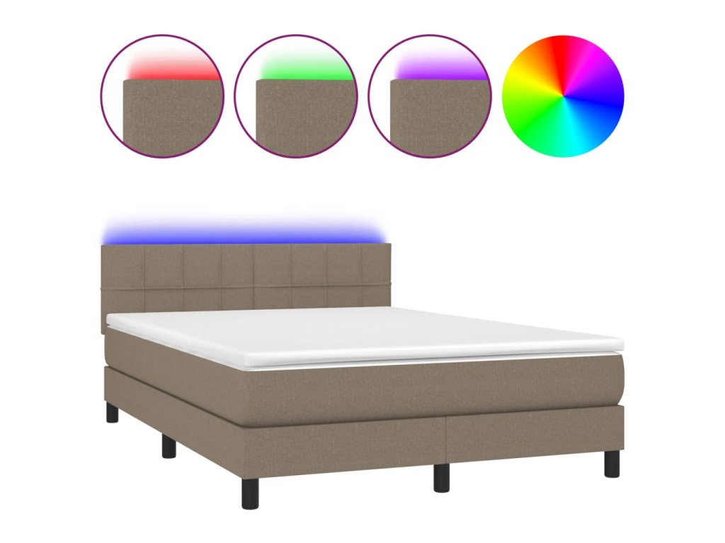 vidaXL Posteľ boxsping s matracom a LED sivohnedá 140x200 cm látka