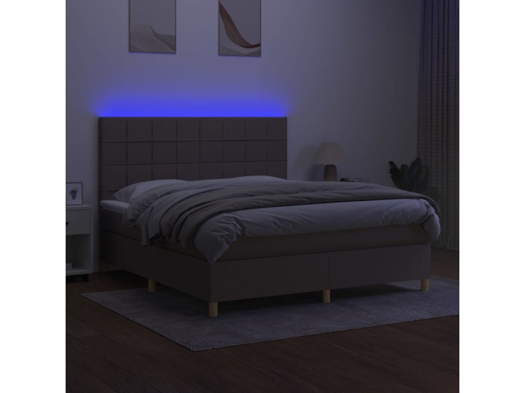 vidaXL Posteľ boxsping s matracom a LED sivohnedá 180x200 cm látka