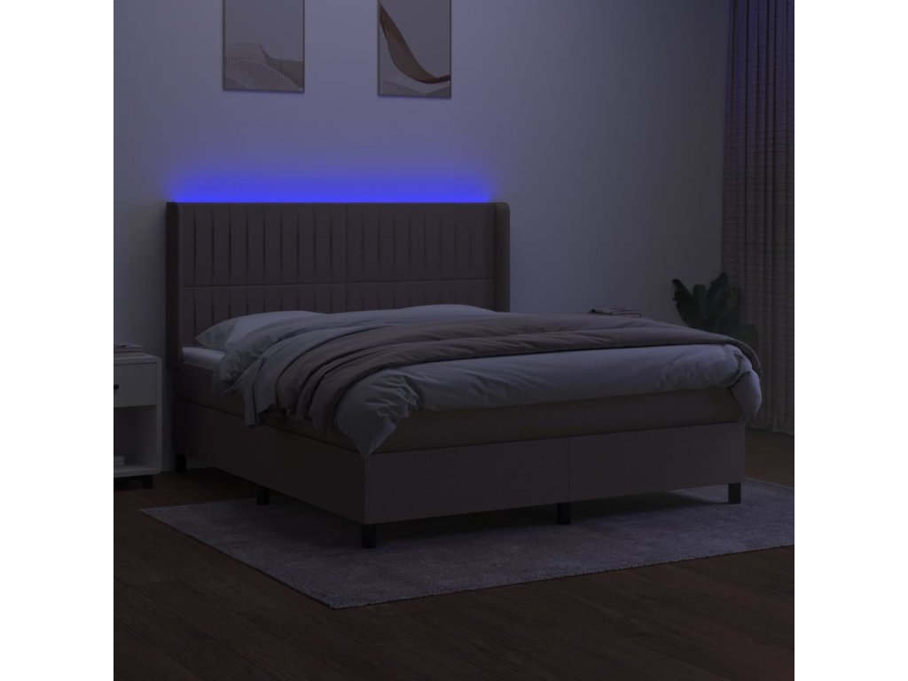 vidaXL Posteľ boxsping s matracom a LED sivohnedá 180x200 cm látka