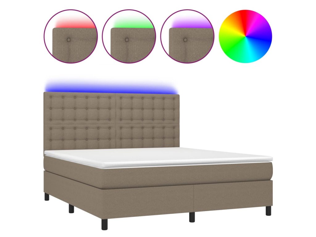 vidaXL Posteľ boxsping s matracom a LED sivohnedá 180x200 cm látka