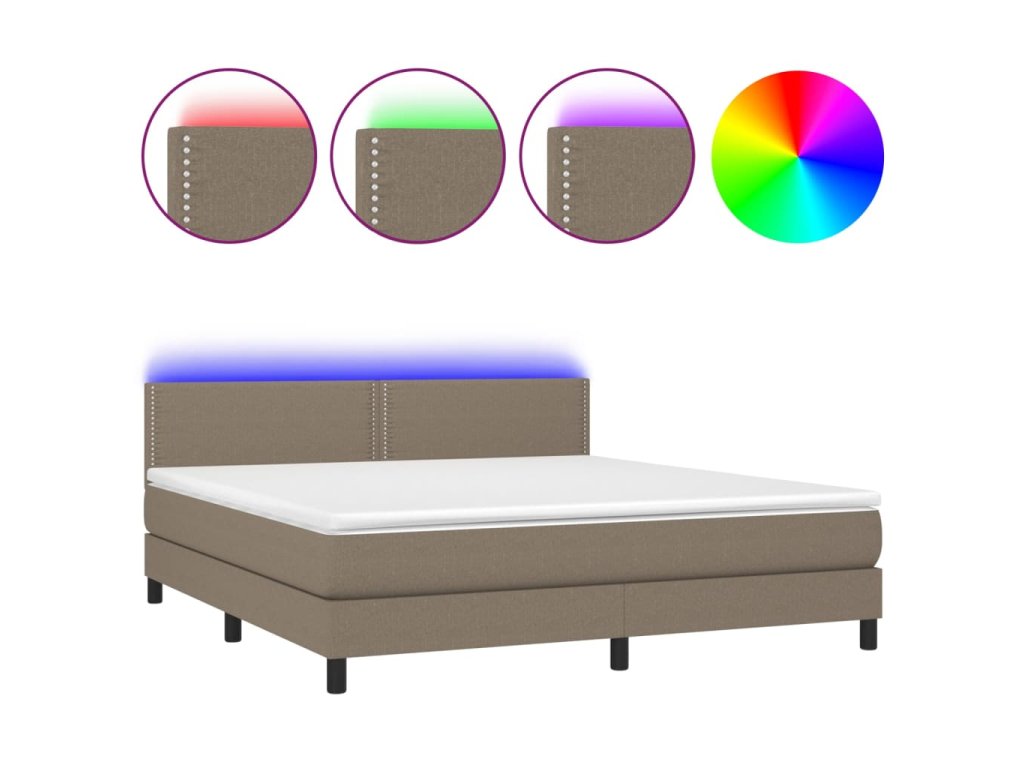 vidaXL Posteľ boxsping s matracom a LED sivohnedá 180x200 cm látka