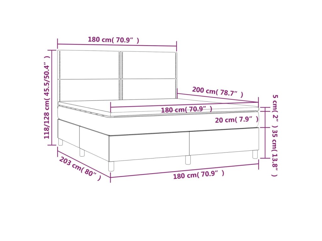 vidaXL Posteľ boxsping s matracom a LED sivohnedá 180x200 cm látka