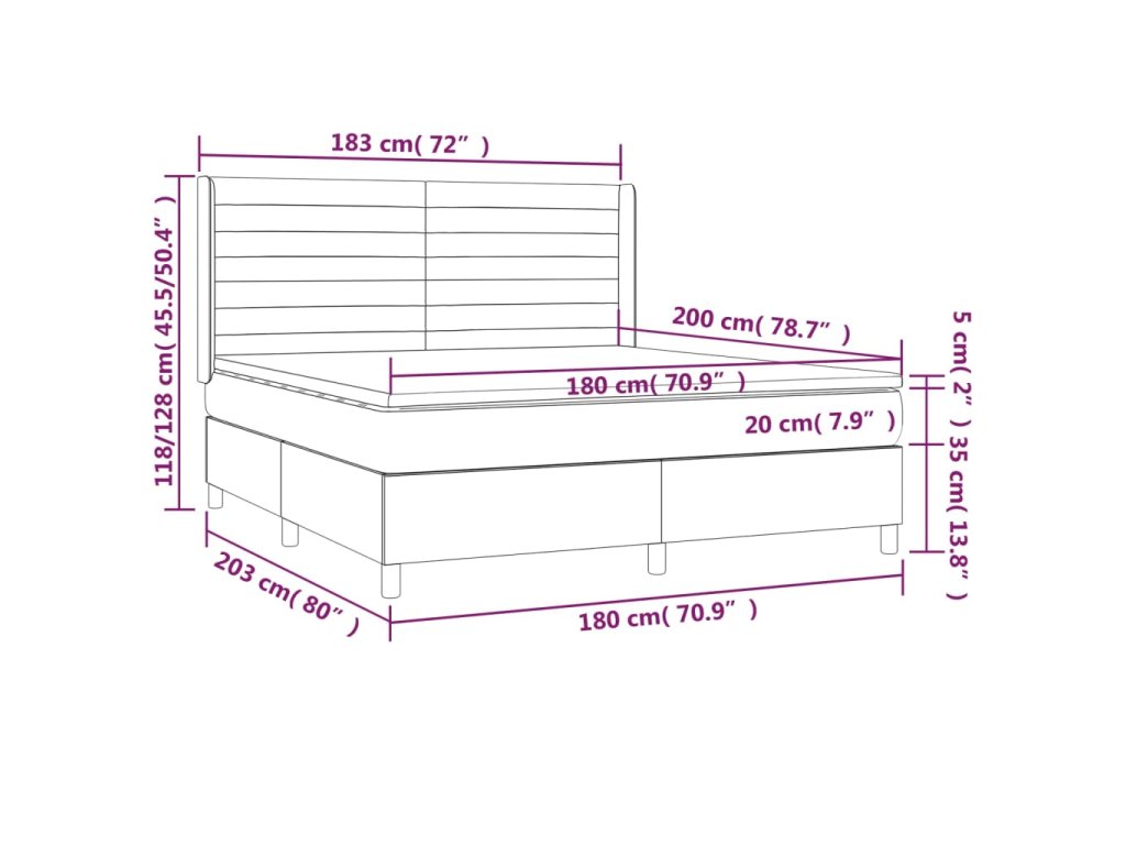 vidaXL Posteľ boxsping s matracom a LED sivohnedá 180x200 cm látka