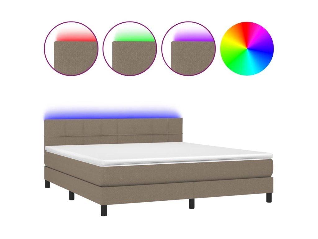 vidaXL Posteľ boxsping s matracom a LED sivohnedá 180x200 cm látka