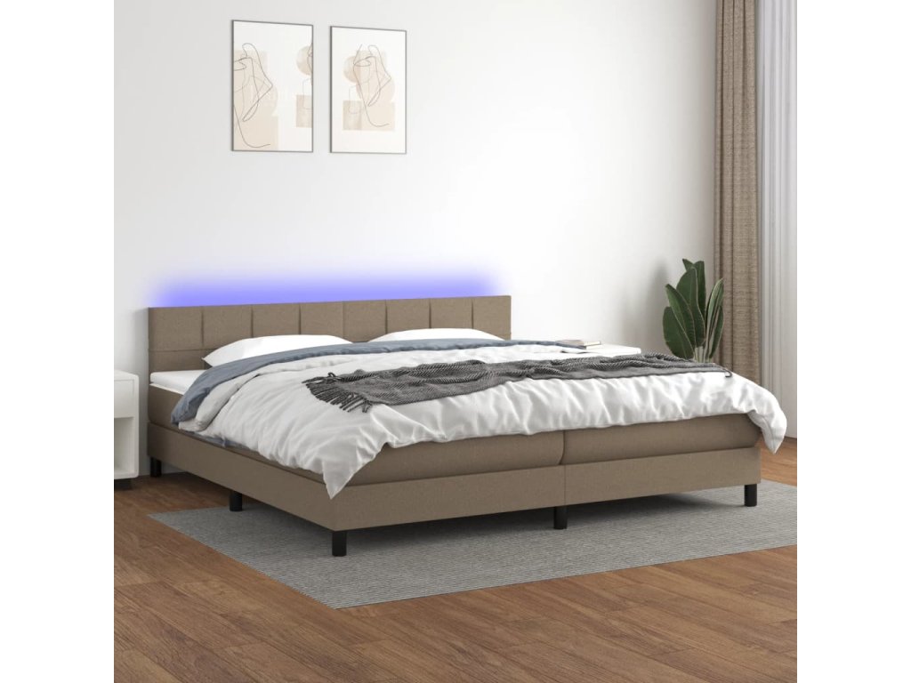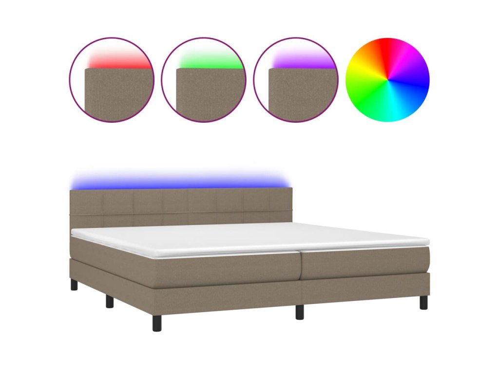 vidaXL Posteľ boxsping s matracom a LED sivohnedá 200x200 cm látka