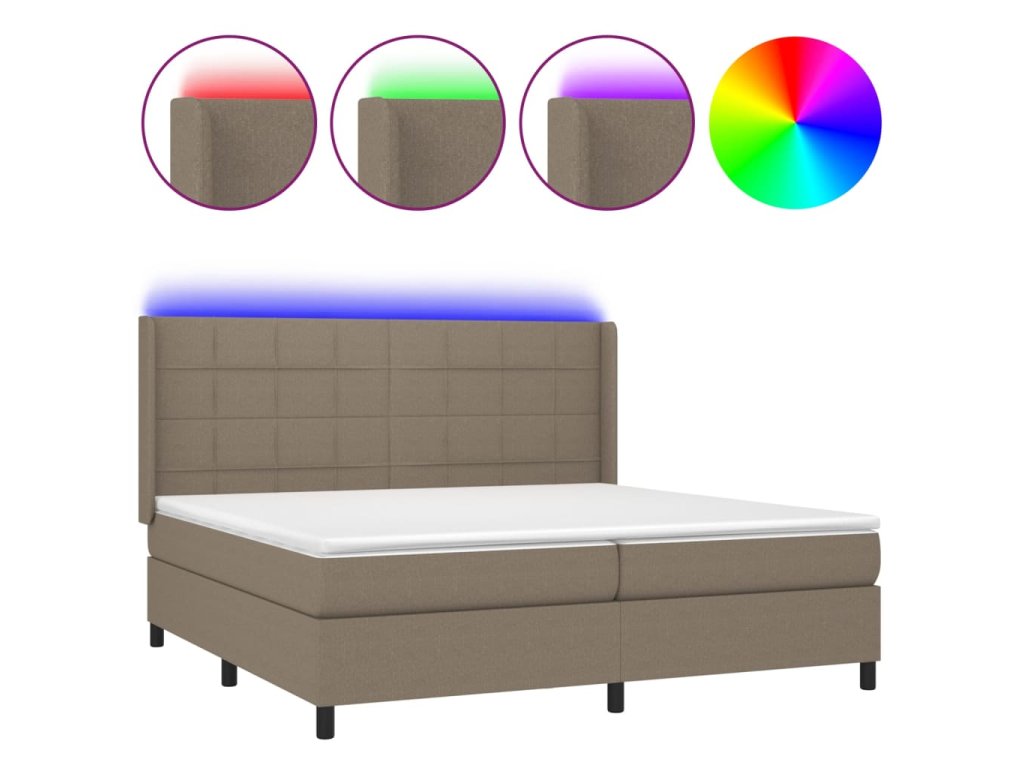 vidaXL Posteľ boxsping s matracom a LED sivohnedá 200x200 cm látka