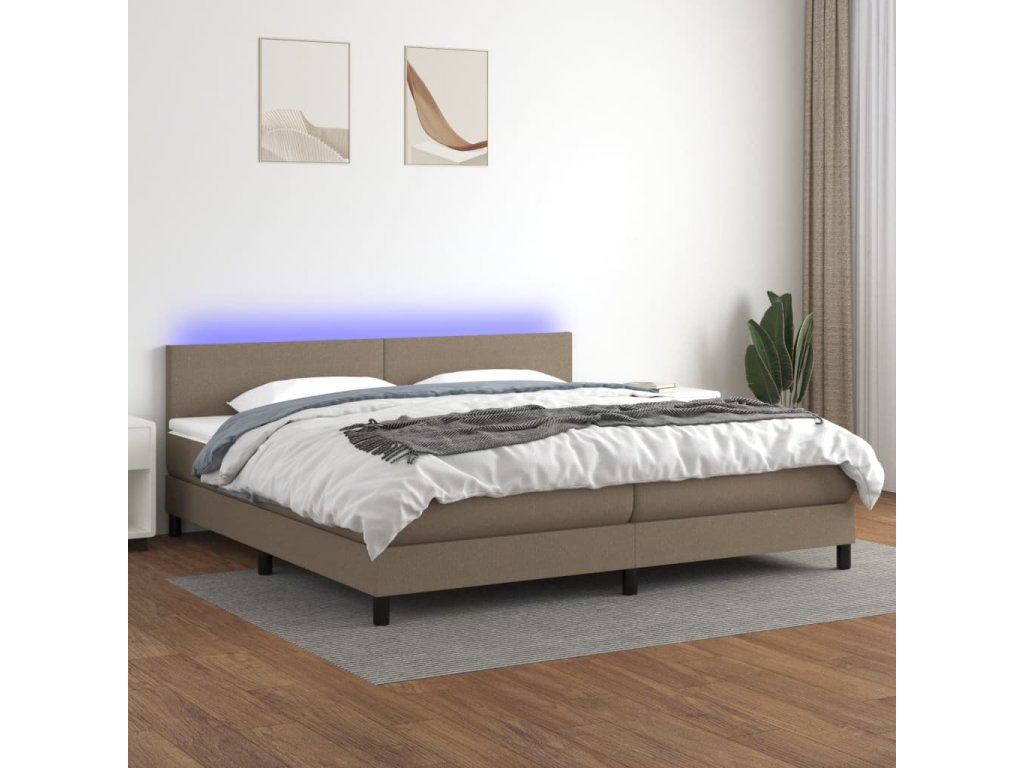 vidaXL Posteľ boxsping s matracom a LED sivohnedá 200x200 cm látka