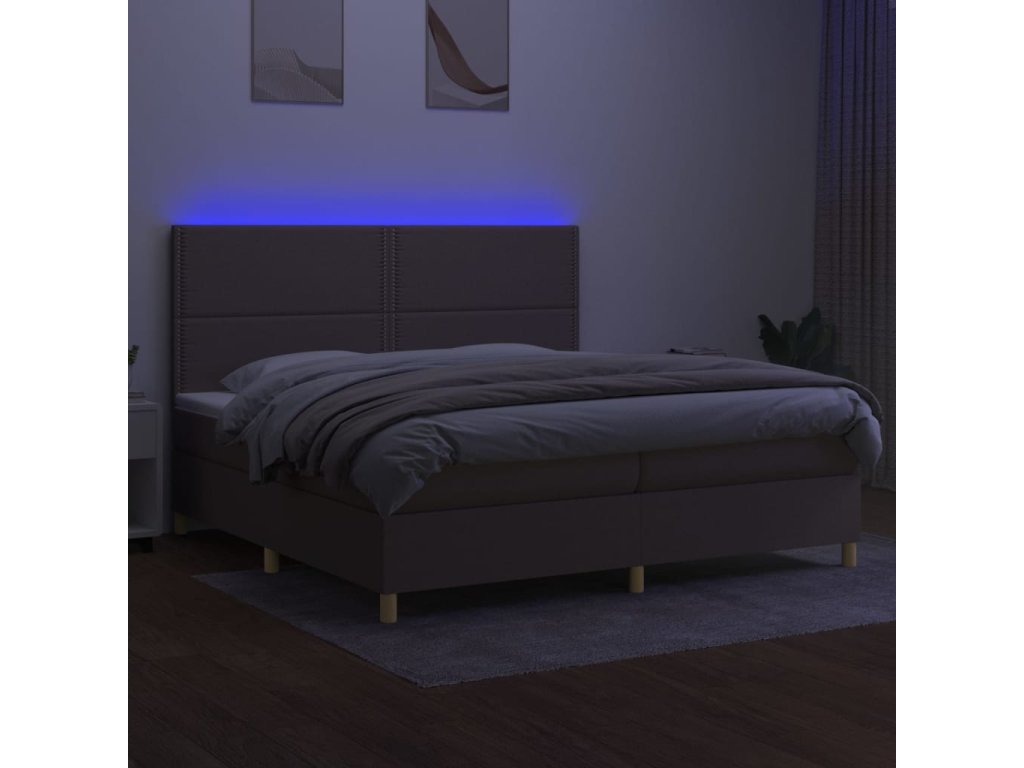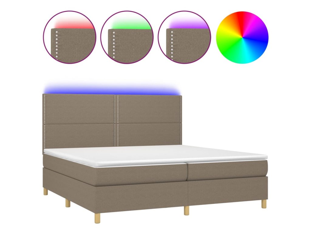 vidaXL Posteľ boxsping s matracom a LED sivohnedá 200x200 cm látka