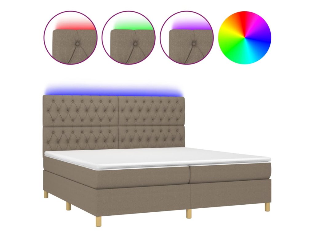 vidaXL Posteľ boxsping s matracom a LED sivohnedá 200x200 cm látka