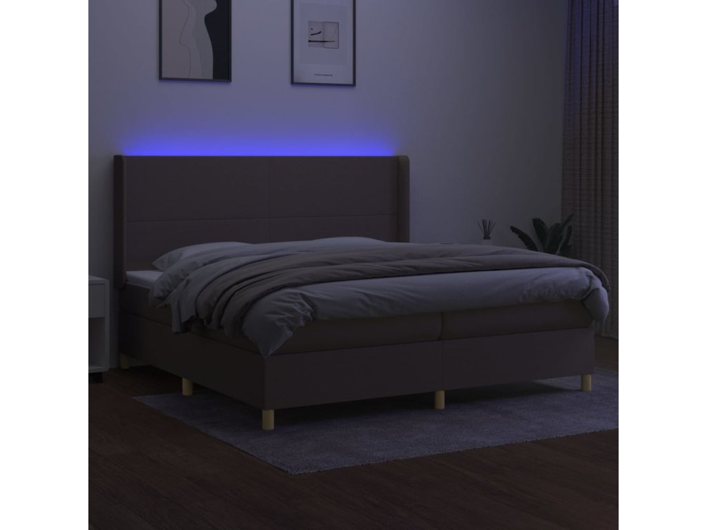 vidaXL Posteľ boxsping s matracom a LED sivohnedá 200x200 cm látka