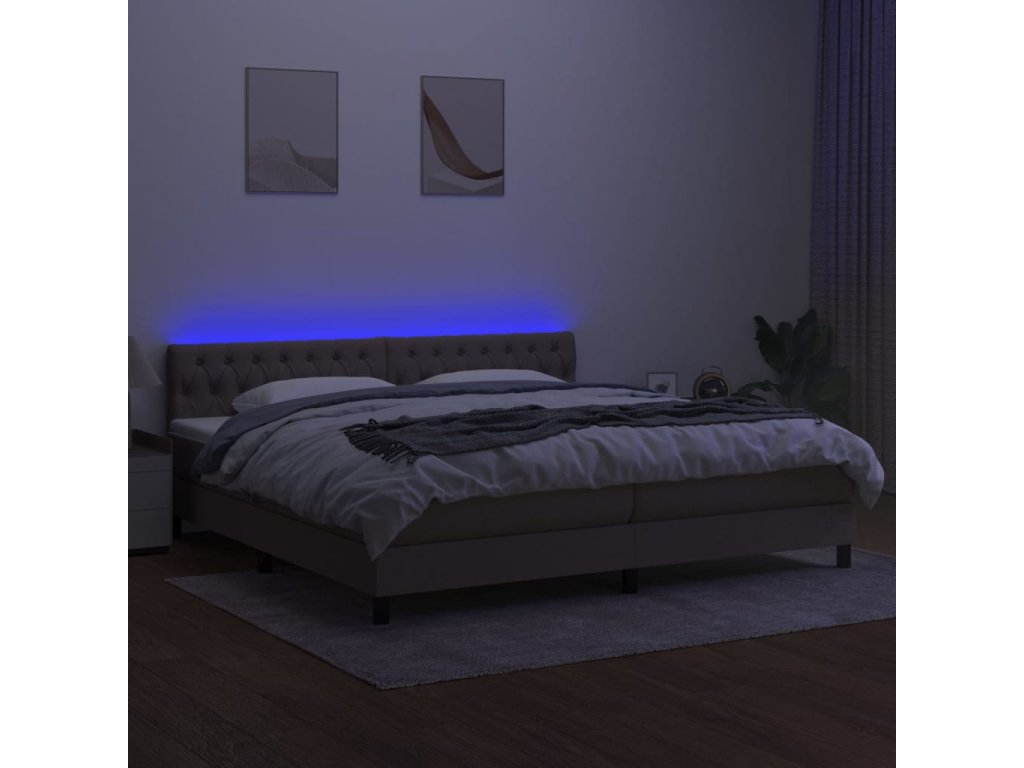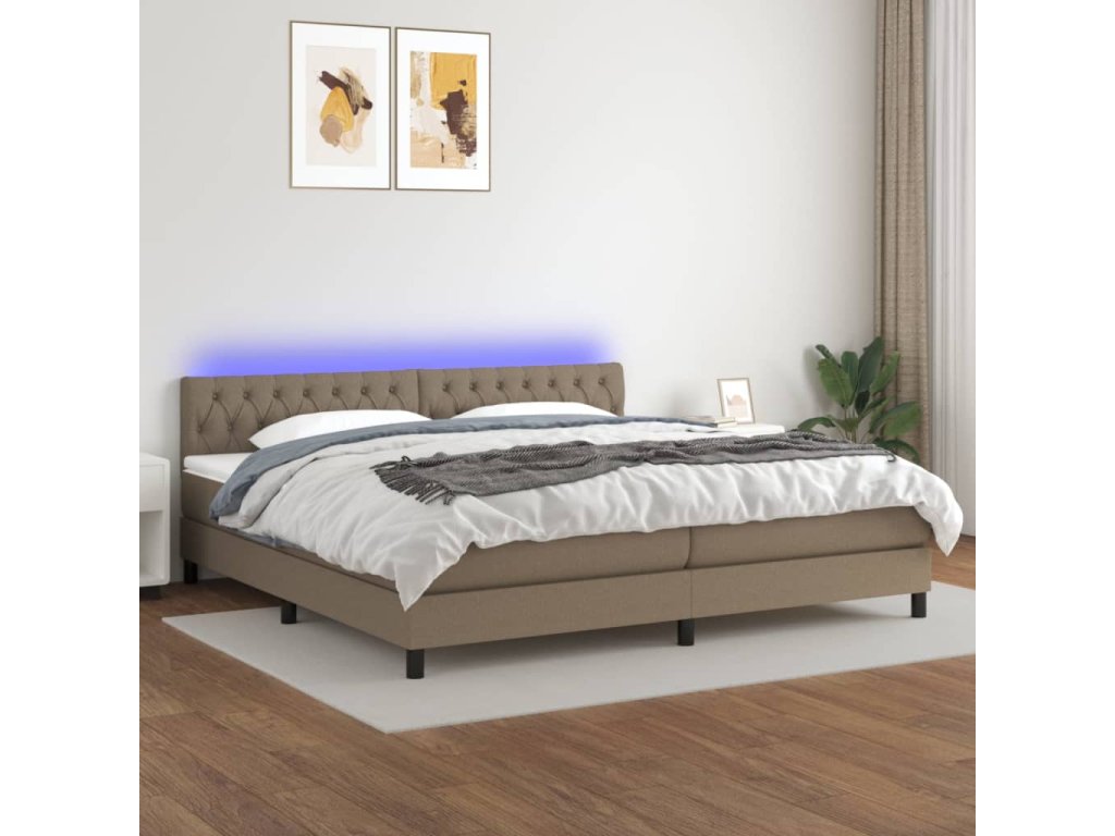 vidaXL Posteľ boxsping s matracom a LED sivohnedá 200x200 cm látka
