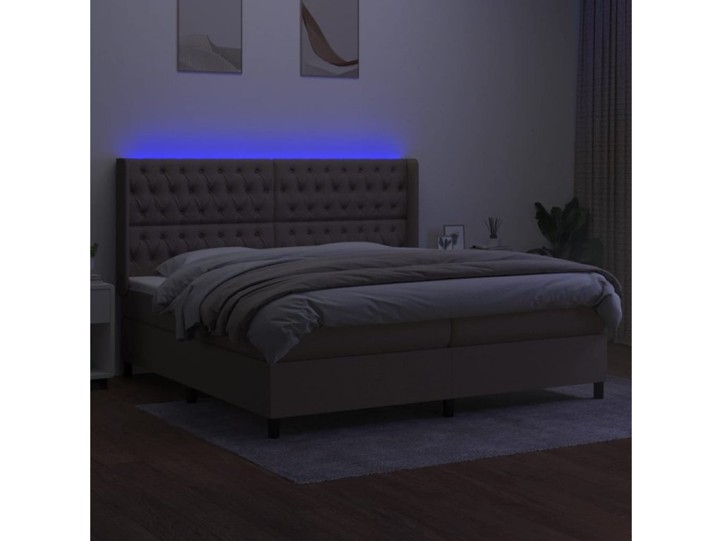vidaXL Posteľ boxsping s matracom a LED sivohnedá 200x200 cm látka