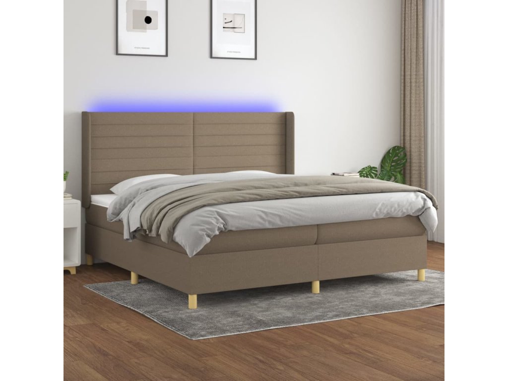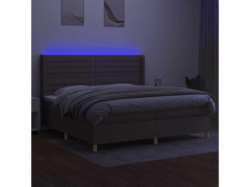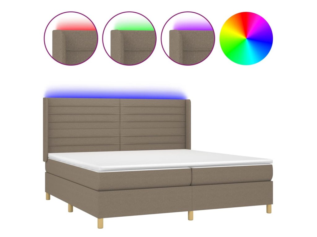 vidaXL Posteľ boxsping s matracom a LED sivohnedá 200x200 cm látka