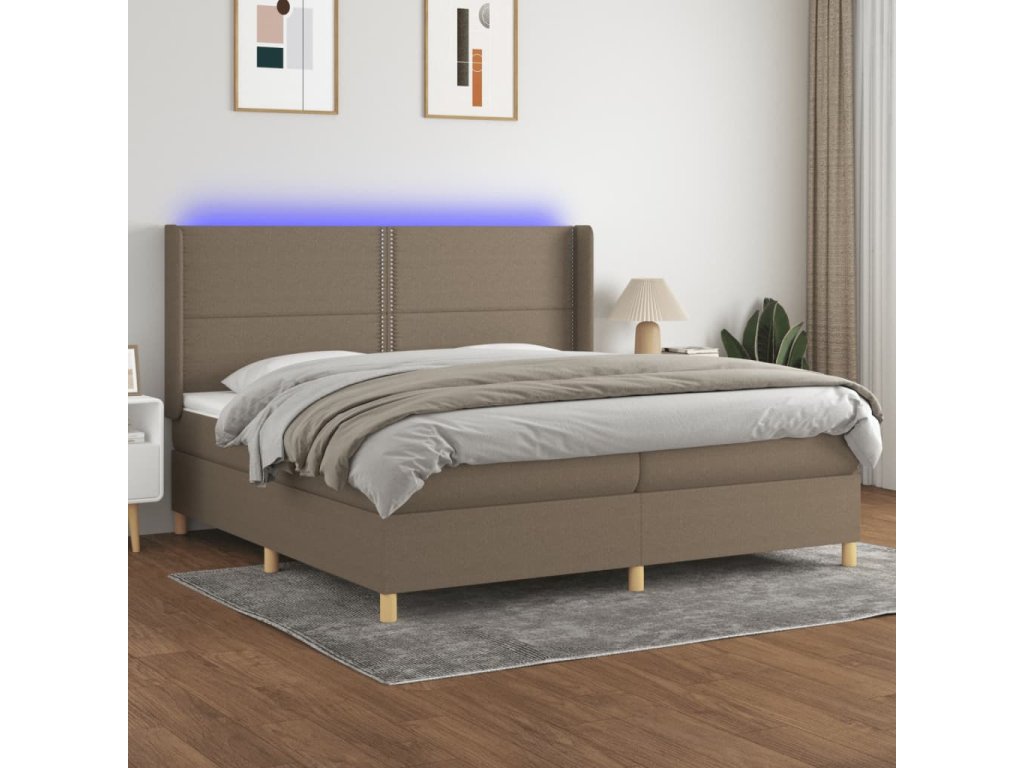 vidaXL Posteľ boxsping s matracom a LED sivohnedá 200x200 cm látka